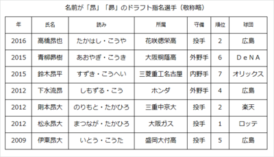 さて、話をドラフトに戻しましょう。平成になって30回目、平成最後のドラフト会議でもあります。昨年まで約2500人の選手が指名され、うち名前の字が「昂」は6人、「昴」が1人でした。先に人名用漢字になった「昂」がやや優勢です。これから「昂」の選手の活躍で字の知名度が上がり「昴」と間違えられなくなるのか。それともさらに間違いが増えていくのでしょうか。逆に「昴」を「昂」とするケースが出てくるかもしれません。